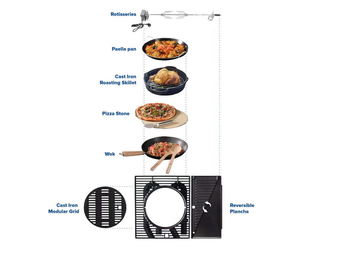 - Cooking surface configuration: culinary modular grid + reversible griddle