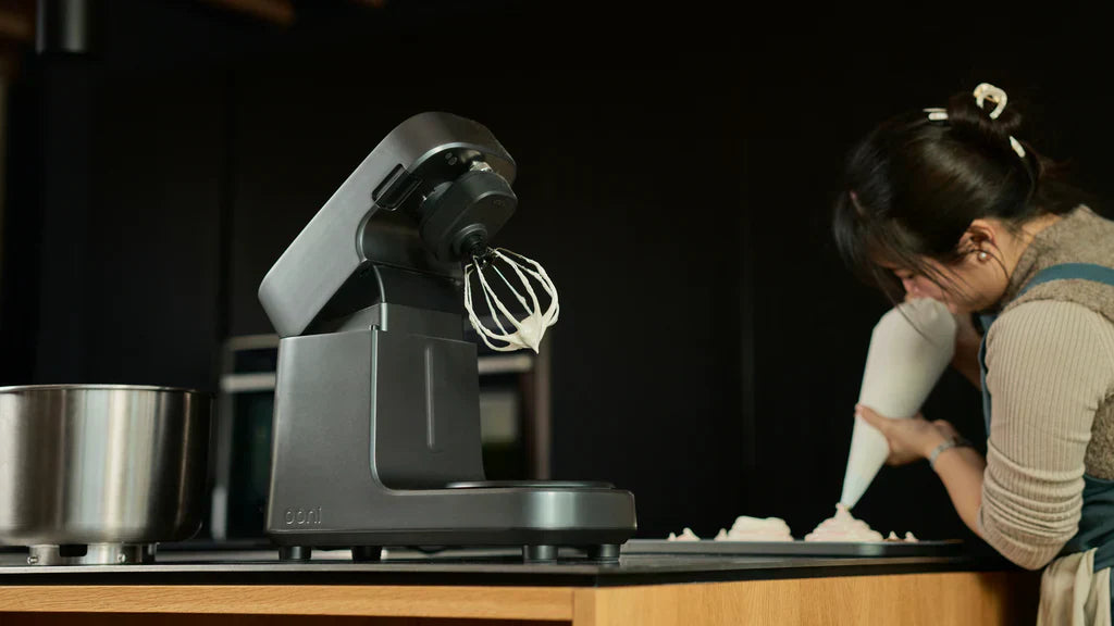 Most commercial spiral dough mixers can only be used for making dough, with a fixed bowl and a non-removable breaker bar, which limits versatility. We knew the Ooni Halo Pro spiral mixer needed to do more than “just” dough to earn its place in your kitchen. The Ooni Halo Pro’s detachable rotating bowl, tilt-head mechanism and patent-pending Removable Breaker Bar allow you to switch attachments quickly and easily, from the Spiral Dough Hook to a Geared Whisk or a Flexible Beater - unlocking a world of versatility for home bakers.