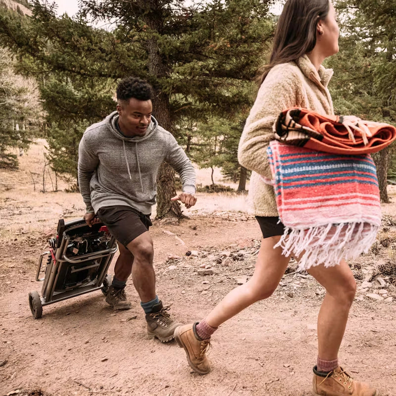 The Weber Traveler Gas BBQ barbecue reflects the signature design and high-quality material hallmarks of Weber products, including a porcelain-enamelled lid, cook box, and cast-iron cooking grates. Porcelain-enamel offers superior heat retention and durability, while the cast-iron grates promote even heat distribution across the entire barbecuing surface to help create evenly cooked food and that coveted, delicious sear.